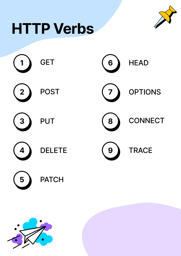 This cheat sheet covers the most commonly used HTTP verbs, what they do, and when to use them. It also provides a brief overview of the HTTP request lifecycle.